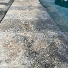 This project included cleaning, sanding and sealing a paver/travertine pool deck. This pool deck had two different surfaces that needed to be sealed and this project surpassed the customers expectations. The pavers were sealed with our topical sealer and the travertine was sealed with our impregnating sealer. This pool deck will be protected for years to come!!